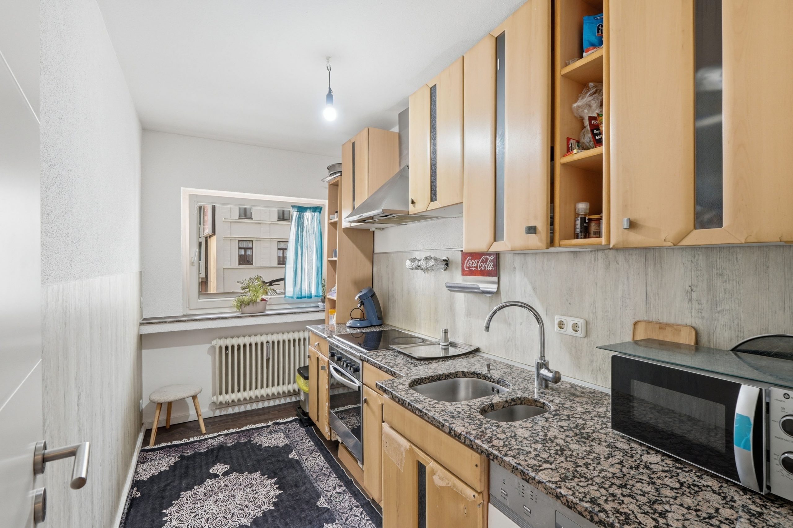Die separate Küche ist funktional gestaltet und ermöglicht kurze Wege im Alltag. Das Badezimmer ist kompakt und funktional ausgestattet und bietet Potenzial zur individuellen Modernisierung.