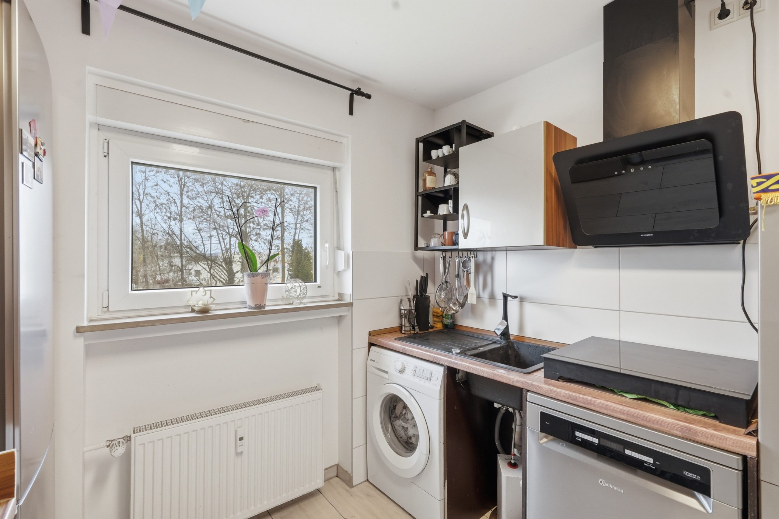 Die separate Küche ist praktisch geschnitten und bietet ausreichend Platz für Arbeitsfläche und Stauraum. Ergänzt wird das Raumangebot durch einen Abstellraum innerhalb der Wohnung.